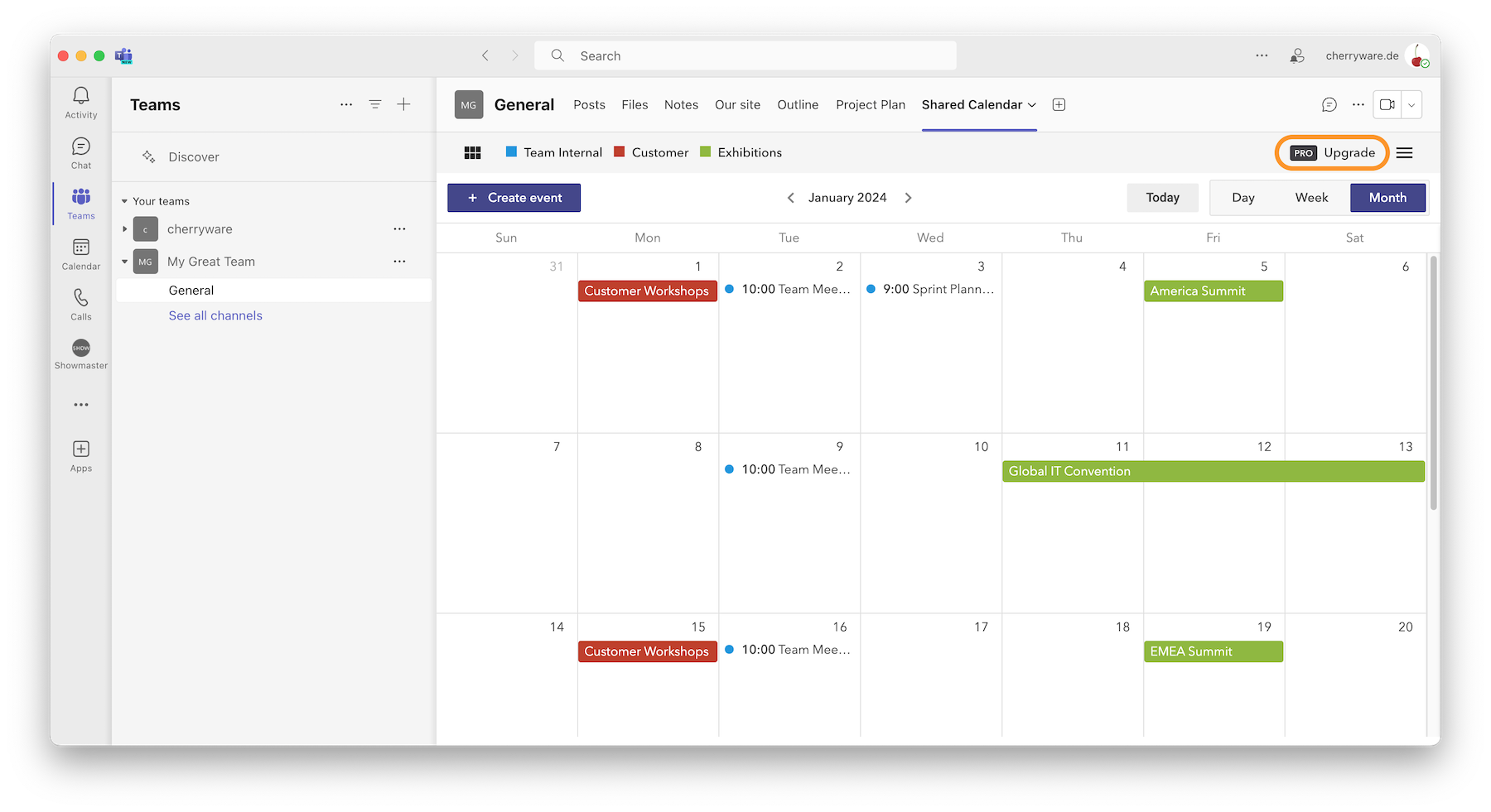 - Go to your Shared Calendar tab in one of your channels or add a new shared calendar if it is not already there.